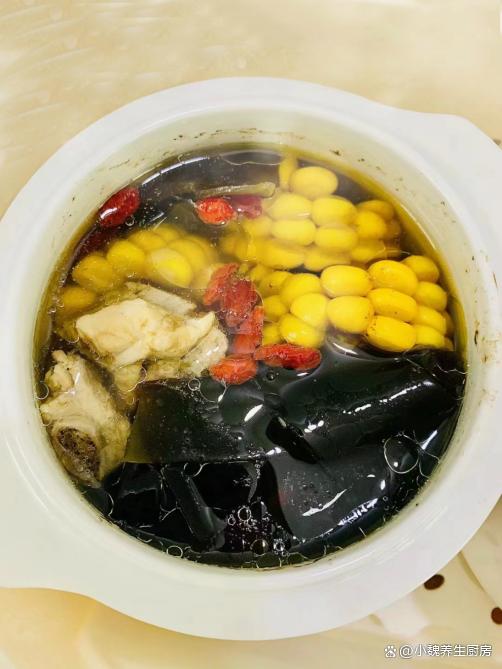 第六步:准备好煲汤的锅,锅中放入猪骨块,玉米,黄豆和海带,加上适量纯净水或冷水,水开煮8分钟左右。 第七步:转小火继续煲80分钟,等待玉米和猪骨都煮熟了,加上一丢丢食盐和胡椒粉,放入一些枸杞子,焖煮一小会儿,将汤汁煮至入味,出锅了,这款海带玉米黄豆猪骨汤就烹饪完成了。 海带玉米黄豆猪骨汤是许多广东人最爱的靓汤,秋冬季节要每天喝,主要选用猪骨,海带,黄豆和玉米等食材,简单煮一锅,几种食材的营养都在汤里,丰富的钙质,蛋白质和碘元素,让汤汁鲜上加鲜,营养极高,促进骨骼的发育,调节身体的新陈代谢,滋润肌肤,补充营养,让你身体更加强壮,抵抗力增强。 网友们,你们是否喝过这款海带玉米黄豆猪骨汤呢?(以上配图都出自网络)