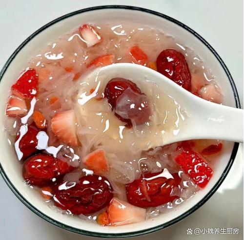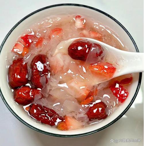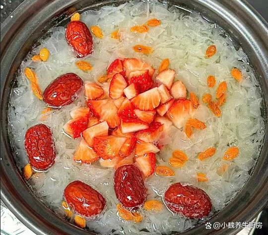 转眼之间,今年已经到了最后的阶段,已经进入寒冷“模式”,各地都开始降温了,南方许多城市都将至个位数,据说马上也要降雪了,每年小编都盼望一场大雪,明年才会有好兆头。冬天的天气非常寒冷,许多人的抵抗力很差,女性特别容易贫血,肌肤非常粗糙,还容易长色斑,气色非常差,感觉白天和晚上都没有力气。冬天天气冷,多吃热乎乎的食物,多喝一些水果甜汤,比如说这款草莓红枣银耳汤,做法十分简单,喝起来很甘甜,滋补养生,补血益气,肌肤更水嫩,不懂吃可惜了。许多人没有喝过这款草莓红枣银耳汤,到底应该如何制作呢?快一点跟着小编学起来吧。冬天,女性要多喝“这汤”,每天喝一碗,补血养颜,更显年轻!