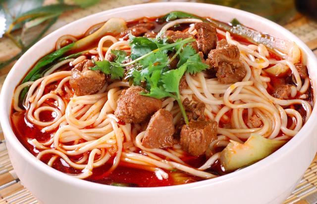 麻酱拌面是一款口感香浓爽滑的面食。首先,将面条煮熟捞出备用。然后,将芝麻酱、酱油、醋、糖、蒜末等调料混合搅拌均匀备用。接着,将黄瓜切成细丝、香菜切碎备用。最后,将煮好的面条和黄瓜丝、香菜碎混合在一起,倒入调好的麻酱汁搅拌均匀即可。 五、红烧牛肉面
