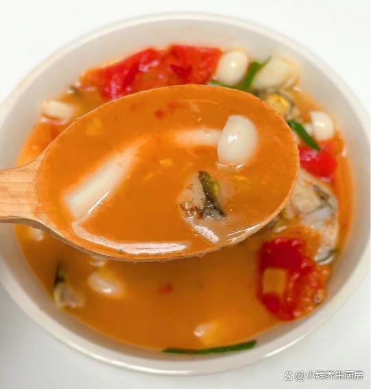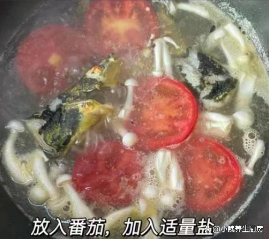 步骤4:锅底提前烧热,预热后加上冷油,放入一些蒜末和姜末,快速将其爆香,放入黄骨鱼煎至两面金黄,不要一直翻动。 步骤5:加上适量开水再次煮沸,放入一些白玉菇和番茄片,盖上锅盖,小火焖煮一会儿。 步骤6:加上半勺味极鲜来提鲜,调入少许食盐调味,加上半勺鸡精和半勺白胡椒粉,用勺子搅动几下,让汤汁煮至入味。 步骤7:小火煮一会儿,放入葱花和香菜,关火出锅,这款番茄菌菇黄骨鱼汤就烹饪完成了。 番茄菌菇黄骨鱼汤是一款特别鲜美的汤品,主要选用黄骨鱼,番茄和菌菇制作而成,经过十几分钟的烹饪,汤汁喝起来酸甜开胃,鲜美极了,鱼肉非常鲜嫩,暖胃养胃,补充蛋白质和其他营养,一碗下去暖和和的。 网友们,你们是否喝过这款番茄菌菇黄骨鱼汤呢?(文中配图均来自网络)