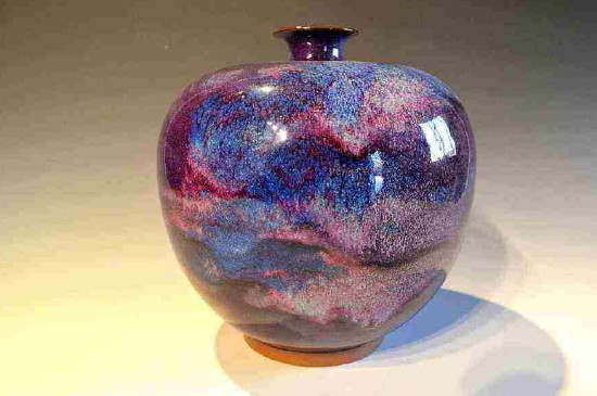 色彩,钧瓷颜色丰富多彩,以美妙著称,因为含有铜,烧制后的釉色青中带红;纹路,钧瓷器型纹路奇特,纵横交错的冰裂纹器物光彩透亮;样式,烧制出来的每一件钧瓷样式只有一款;刻字,在器物底部可见数字一到十的刻字。 1、色彩