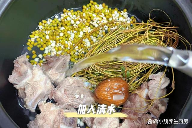 进入冬天的初期,12月份之后就要迎来寒冬,气温会出现迅速降低,气候寒冷干燥,感觉四肢无力,脸部出现水肿,感觉一整天都没有力气。冬天是非常阴冷潮湿的湿气,人们经常出现身体不适的情况,免疫力非常低下,湿气会入侵我们的身体,冬天祛湿就非常重要了。冬天祛湿,我们可以从饮食方面入手,少吃火锅和烧烤,多吃一些冬瓜,薏米,芡实和萝卜等等。冬天身体湿气非常重,我们要加强运动锻炼,促进身体的新陈代谢,帮助排出体内湿气,平常要保持室内空气的流通,还可以搭配一些食疗方,用于赶跑体内的湿气,让身体更加轻松。今天分享一款祛湿汤的做法——鸡骨草薏米绿豆排骨汤,简单炖一锅,每周喝几次,好处多多。冬天祛湿,常给家人喝这汤,祛湿健脾,暖心暖胃,增强抵抗力。  【鸡骨草薏米绿豆排骨汤的正确做法】 食材明细:挑选新鲜的猪排骨400克左右(排骨是一年四季都可以吃到的食材,价格虽然贵一点,但是可以有多种吃法,肉质鲜嫩,红烧不如炖汤,排骨汤非常滋补,冬天要多喝它),若干个蜜枣,鸡骨草100克(鸡骨草是一味药材,可以拿来煲汤喝,具有祛湿的效用),薏米50克左右,绿豆65克左右,冷水少许,温开水少许,生姜一大块,料酒若干,大葱半根,少许食盐,胡椒粉一丢丢,其他佐料。 正确制作步骤: 步骤1:提前选购好鸡骨草,排骨,薏米和绿豆,提前把鸡骨草用流水冲洗干净,将鸡骨草打成结,备用。步骤2:几个蜜枣洗净去核,绿豆用清水淘洗干净,绿豆用冷水浸泡一会儿,或者将绿豆放在冰箱冷藏,这样绿豆煮出来色泽好看,更容易煮开花。步骤3:将薏米放在容器里,加上适量清水泡发几个小时,生姜洗净切成片状,大葱切成若干小段,备用。 步骤4:把排骨剁成若干块状,排骨用冷水浸泡出血水,另外起锅,锅中放入排骨块,记得加冷水下锅,放入葱段和姜片,加上适量料酒去腥,用温水冲洗掉排骨的浮沫,准备好全部食材,开始制作这道鸡骨草薏米绿豆排骨汤。 步骤5:准备好一个煲汤的汤锅,锅中放入焯水好的排骨,放入薏米和绿豆,鸡骨草,生姜片和蜜枣,加上适量清水或开水,盖上锅盖大火焖煮。 步骤6:然后转小火继续焖煮,汤汁煮至色泽变黄,调入少许食盐调味,调入半勺白胡椒粉,焖煮一小会儿,关火出锅,这款鸡骨草薏米绿豆排骨汤就烹饪完成了。 鸡骨草薏米绿豆排骨汤是一款不错的祛湿汤,主要选用鸡骨草,薏米和绿豆,都是祛湿的食材,搭配排骨炖一锅,汤汁鲜美好喝,营养更容易吸收,还可以排出体内湿气,减轻身体的压力,早食早受益。 小伙伴们,你们是否喝过这款鸡骨草薏米绿豆排骨汤吗?(文中配图都来自网络)www.ws46.com