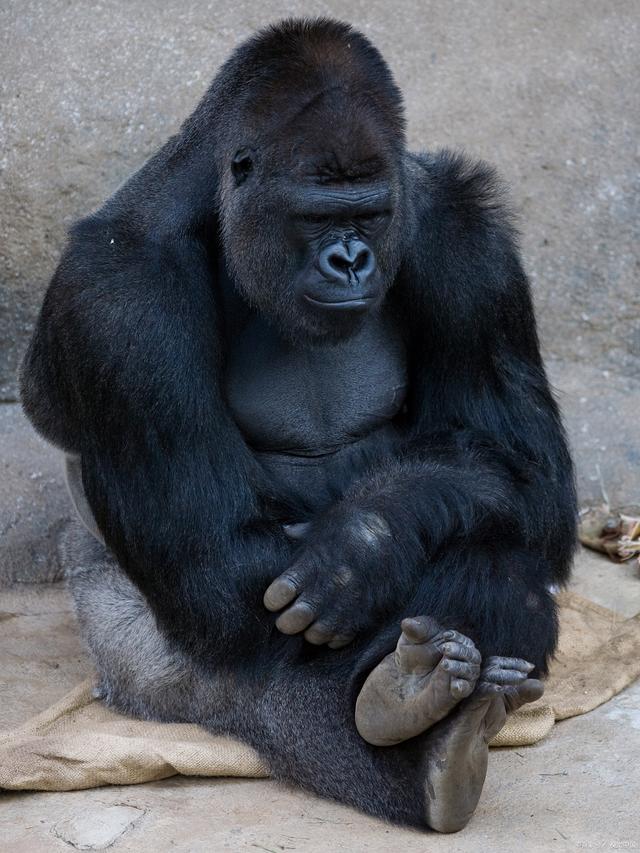 大猩猩体型庞大,高度可达1.8米,体重可达180公斤。它们拥有强壮的四肢,可以在树枝和地面上自如地奔跑、攀爬和行走。大猩猩的智商非常高,据说它们具有高度的社交和工具使用技能。 大猩猩主要以水果为食,其次是叶子、花、昆虫及少量的动物,比如小鱼、昆虫和鸟卵。它们被认为是拥有文化和智慧的物种之一,在大猩猩群体中会传承一些特殊智慧和技能,例如制作工具来获取食物。