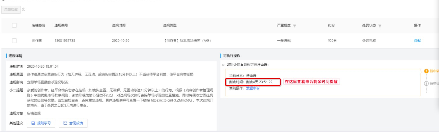 提醒:超时未申诉,入口将全部关闭,无法申诉,违规将继续执行哦!请及时进行申诉哦!