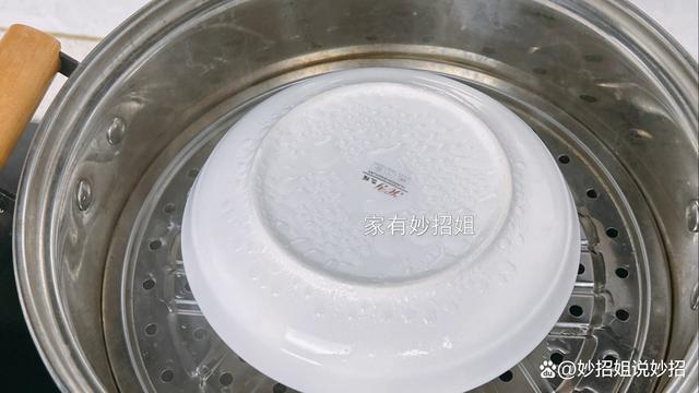 第六步:接下来往蒸锅中加入多一些的清水,把水烧开后,我们再将蛋液放在蒸屉上。在开始蒸之前,还需要拿个盘子倒扣在鸡蛋液上。这一步的目的就是可以防止水蒸气掉落在鸡蛋羹表面,使鸡蛋羹表面不平整。