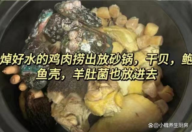 进入11月份的下旬,开始进入寒冬模式,即将要迎来小雪节气,各地都开始飘雪,冷空气席卷各地,气温会逐渐降低,脾胃虚寒,身体抵抗力很差。寒冷的天气里,受到冷空气的侵蚀,我们需要注意保暖御寒,老年人和孩子抵抗力很差,身体很容易着凉,记得要多穿一些衣服,避免手脚着凉了,平常要多喝热水,多喝暖和和的汤品,比如说这款羊肚菌鲍鱼炖鸡汤,此汤用新鲜土鸡,羊肚菌和鲍鱼制作而成,让汤品鲜美倍增,好喝还不油腻,不懂吃太可惜了。“寒冬多喝汤,来年不用慌”,平常多喝这汤,补足营养,顺利过冬。  【羊肚菌鲍鱼炖鸡汤的正确做法】 食材明细:选购羊肚菌60克(羊肚菌是一种南方人煲汤的食材,多以野生为主,能够增添汤品的鲜美度,补肾壮阳,对我们的身体有很多好处),鲍鱼200克左右(鲍鱼是一种优质的海鲜,肉质非常肥美,现在家家户户都吃得起,可以烹饪成各种美食),选购新鲜土鸡800克左右(大概半只土鸡,要选择现杀的活鸡,鸡肉的肉质鲜嫩,鸡汤十分鲜美),干贝80克左右,生姜一大块,冷水和温水少许,枸杞子12克左右,少许食盐,料酒适量,胡椒粉少许,其他佐料。 正确制作顺序: 第一步:提前选购好羊肚菌,鲍鱼,干贝和土鸡,先把羊肚菌放在容器里,加上适量温水泡发,去掉多余的部位,反复清洗几遍,控干表面的水分。 第二步:干贝用温水泡发开,鲍鱼去掉外壳,鲍鱼肉反复清洗干净,开一些花刀,备用。 第三步:土鸡提前宰杀好,土鸡剁成一些块状,鸡肉用清水浸泡,冲洗掉表面的血水,生姜切成一些薄片,枸杞子用冷水冲洗干净,准备好上述一些食材,开始制作这道羊肚菌鲍鱼炖鸡汤吧。 第四步:锅中加上适量冷水,放入洗净的鸡肉,加上姜片和葱段,调入少许料酒,将其煮几分钟,撇去浮沫备用。 来源: www.ws46.com 第五步:提前准备好砂锅,锅中放入焯水好的鸡肉,鲍鱼,羊肚菌和适量清水,盖上锅盖大火煮开,然后转小火炖一个多小时。 第六步:等待汤汁变成淡黄色,加上少许食盐和胡椒粉调味,放入一些枸杞子,焖一小会儿,撒上葱花点缀,关火出锅,这款羊肚菌鲍鱼炖鸡汤就烹饪完成了。 羊肚菌鲍鱼炖鸡汤是一款巨鲜美的汤品,几种食材炖一锅,汤品全部食材的营养,滋补养人,补肾壮阳,补气活血,身体越来越强壮,早食早受益。 小伙伴们,你们是否喝过这款羊肚菌鲍鱼炖鸡汤吗?(文中配图都来自网络)