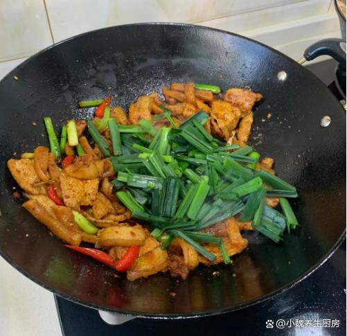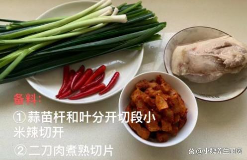 11月份已经到了后半段,距离元旦和新年的脚步越来越近,时间感觉过得超级快,现在已经是今年的最后的季节——冬季,初冬时节不是特别冷,但是会非常阴冷潮湿,早晚的温差很大,许多时令菜就上市了,比如说萝卜和白菜。每年到了冬季,家里的萝卜根本吃不完,可以做成许多美食,还可以做成萝卜干,吃起来非常开胃。今天准备用蒜苗,萝卜干和五花肉制作一道菜肴——青蒜苗萝卜干炒回锅肉,色香味俱全,就是特别费米饭。许多人第一次吃这道青蒜苗萝卜干炒回锅肉,到底要如何烹饪呢?记得学起来哦。冬季,无论多忙,常给家人吃这菜,营养又开胃,大人孩子都抢着吃。  【青蒜苗萝卜干炒回锅肉的详细做法】 食材清单:选购几根新鲜蒜苗几根(蒜苗又叫大蒜叶,是湖北人最爱的配菜,有着独特的香味,既可以起到提味和增香的目的,让人非常有食欲),小米椒若干个,少许食用油,新鲜五花肉320克(五花肉是制作回锅肉的原材料,五花肉吃起来不会腻,搭配许多配菜炒更下饭,下酒非常不错),萝卜干50克左右,食用油少许,冷水少许,姜片和香葱若干根,食盐少许,生抽和蚝油少许,料酒一勺,一丢丢食盐,半勺白糖,半勺鸡精,其他佐料。 正确:制作步骤: 步骤1:提前选购好五花肉,青蒜苗和萝卜干,先把几根蒜苗去掉根部,掐掉不新鲜的叶片,反复冲洗干净,斜切成若干小段。步骤2:将五花肉清洗干净,锅中煮一小锅清水,放入一块五花肉,放入姜片和葱结,加上一勺料酒去腥,将其焯烫几分钟,捞出切成若干片状,备用。步骤3:将大蒜和生姜切成细末,小米椒去蒂洗净,切成若干小圈,准备好萝卜干,蒜苗和五花肉,开始制作这道青蒜苗萝卜干炒回锅肉吧。