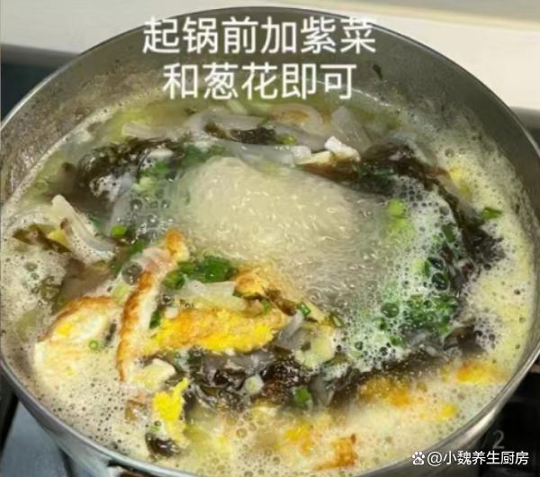 已经到了11月份中旬,正式进入到冬天,初冬时节的温度还不算低,但是已经接近寒冷的感觉,气温会慢慢降低,身体容易缺水水分,皮肤非常干燥,嗓子也不舒服,身体会觉得很寒冷,感觉很容易出现生病。冬天养生,喝汤是一些人的首选,白萝卜是冬季的最佳选择,萝卜丝可以用来煮汤,搭配鸡蛋和紫菜才是绝配,汤品色泽好看,鲜美倍增,喝起来超级鲜美。  冬天来临,感觉外面超级寒冷,阴冷潮湿的气候,我们需要注意调理脾胃,平常建议多喝汤汤水水,少吃太油腻的食物,不如给家里人尝尝这款鲜汤——紫菜萝卜丝煎蛋汤,许多人没有喝过这款紫菜萝卜丝煎蛋汤,到底要如何制作呢?一起看一看此汤的正确做法吧。“冬季多喝汤,来年都不慌”,平常多喝这碗汤,补充营养顺利度冬。 【紫菜萝卜丝煎蛋汤的正确做法】食材明细:挑选新鲜白萝卜320克左右(白萝卜是冬天最受欢迎的食材之一,民间有“冬吃萝卜,夏吃姜”的说法,打霜之后的萝卜非常甜,营养价值很高,我们家每周喜欢用来煮汤),紫菜40克左右,土鸡蛋3个,食用油少许,一勺猪油,若干片生姜,香葱若干个,清水和温开水若干,一小勺味极鲜,少许食盐和胡椒粉,半勺鸡精,几滴香油,若干根香葱,其他佐料。