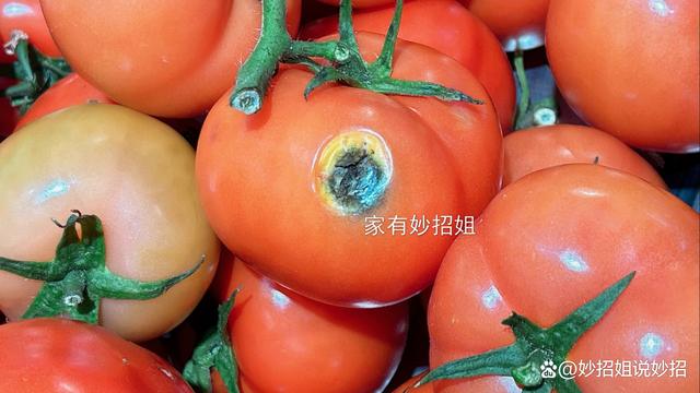 一:看表皮。 现在正是西红柿大量上市的时节,所以这个时候的西红柿成熟度都是比较好的。但由于西红柿的成熟度好,也就会相对脆弱,不管是采摘还是运输,或者是摆出来售卖,一不小心就会造成磕碰,从而使西红柿出现裂缝的情况。一旦西红柿的表皮破裂了,一些苍蝇、小虫子之类的就会被酸甜的气味所吸引,从而前来吸食。而且现在的温度高,西红柿裂开后,也更容易滋生微生物和细菌。因此,在购买西红柿的时候,我们就要注意观察表皮,要是遇到表皮有破损的,我们就不要选购了。
