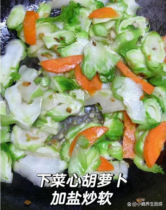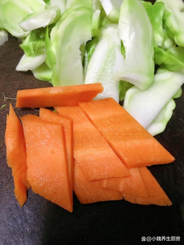 11月份是冬天的开端,寒冷的冬天来临了,早上都是雾气蒙蒙,晚上非常会非常阴冷,很多人由于年纪偏大,容易患上很多疾病,我们要穿上厚一些的衣服,用于来御寒,让身体避免疾病的入侵。冬天来临,市面上又出现很多稀罕菜,比如说胡萝卜,儿菜等等。今天准备准备用儿菜,胡萝卜和猪肉制作一道时令菜——胡萝卜儿菜炒肉片,菜色很好看,好吃又下饭,总吃不腻。11月,碰见这菜别错过,荤素搭配,营养又解馋,大人孩子都爱吃。  【胡萝卜儿菜炒肉片的详细做法】 食材明细:选购新鲜儿菜300克左右(儿菜又叫“超生菜”,是芥菜的一种,富含丰富的膳食纤维、维生素C、钾等营养成分,钙质的含量也很高,吃起来特别脆口,荤素都能够搭配,四川人经常吃,现在吃正当季),选购1-2个胡萝卜,冷水少许,若干个大蒜头,小葱若干根,食用油若干,新鲜猪肉半斤,原味酱油少许,生抽和蚝油少许,一小勺鸡精和味精,食盐若干,香醋半勺,其他调味品。 正确制作顺序: 第一步:提前选购好胡萝卜,儿菜和新鲜猪肉,先把胡萝卜的外皮洗净,切掉两头洗净,切成若干薄片。 第二步:提前把儿菜的刺芽去掉,切掉多余的部位,切成若干片状,锅中煮一小锅冷水,倒入胡萝卜片和儿菜,加上一勺食盐,将其焯水处理,这样会更好脆口,不会降低食材的营养价值。第三步:将新鲜猪肉提前洗干净,猪肉要顺纹切成片状,或者切成细丝,猪肉片放在容器中腌制。 第四步:生姜切成细末,大蒜头和香葱切成细末,肉片用料酒来去腥,加上原味酱油一勺,加上半勺蚝油,裹上一些玉米淀粉,让猪肉片超级嫩滑,腌制到入味。 第五步:锅底调入食用油,让油温慢慢烧热,倒入提前腌制好的肉片,加上半勺酱油,用锅铲快速煸炒,将其炒至变色,盛出备用。 第六步:锅底留少许油,分别放入葱白,姜末和蒜末,快速爆炒出香味,倒入胡萝卜片和儿菜,将其炒至断生。 第七步:加上一小勺食盐,将配菜炒至变软,加上生抽和蚝油少许,放入提前炒熟的肉片,用锅铲翻炒均匀。 第八步:最后加上鸡精,味精和胡椒粉等佐料,翻炒均匀出锅,这道胡萝卜儿菜炒肉片就可以开吃了。 (www.Ws46.com) 胡萝卜儿菜炒肉片是南方人餐桌上的一道家常菜肴,主要采用儿菜,胡萝卜和猪肉烹饪而成,菜色十分好看,有荤有素,儿菜吃起来十分脆甜,肉片细腻嫩滑,一起搭配炒一盘,吃起来很开胃,老少皆宜。 你们是否吃过这道胡萝卜儿菜炒肉片吗?(文中配图都出自网络)