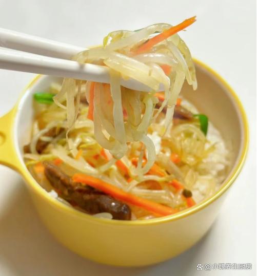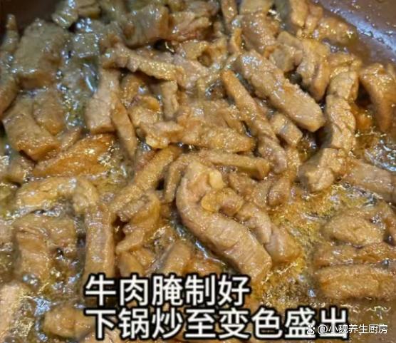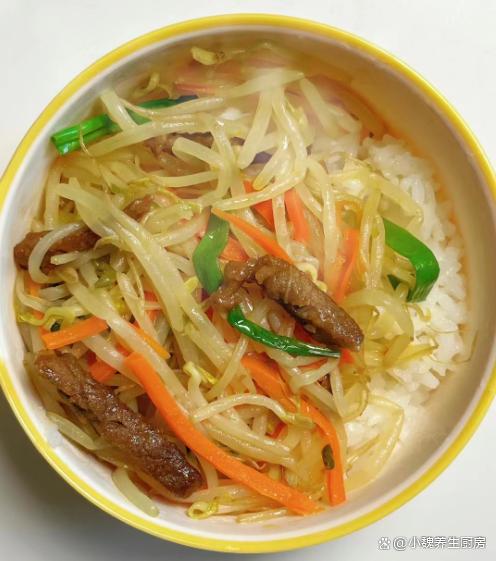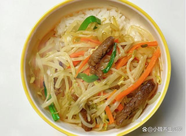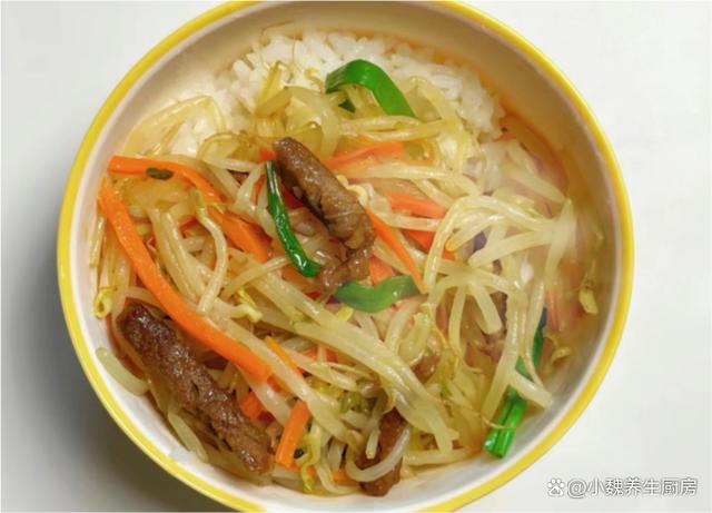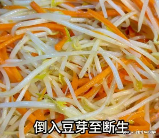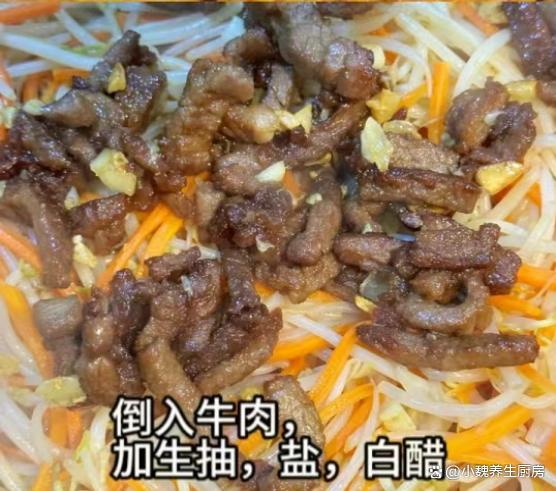 迈入11月份以后,冬天已经来临,各地气温都开始降低了,出现狂风肆虐,雨水增多,让空气非常潮湿,嗓子特别不舒服,全身都没有劲,严重影响到我们的食欲。冬天开始降温了,我们要注意增添衣物,用于抵抗寒冬,餐桌上需要多吃热乎乎的菜肴。我们家餐桌一般是四菜一汤,有菜有肉,而且要营养搭配,今天分享其中一道拿手菜——胡萝卜豆芽炒牛肉丝,几分钟就烹饪完成,吃起来特别有胃口。入冬后,土豆南瓜靠边站,常给家人吃这菜,荤素搭配,出锅后光盘。  【胡萝卜豆芽炒牛肉丝的正确做法】 准备一些食材:挑选新鲜豆芽菜200克(豆芽菜又叫芽苗菜,是平民老百姓都吃得起的蔬菜,豆芽的成本低,口感非常清甜爽口,可以做成很多美味菜肴),一根胡萝卜(胡萝卜的色泽特别好看,口感十分清甜,能够荤素搭配,冬天一定要多囤点),挑选优质牛肉里脊半斤(里脊肉是脊椎骨内侧的一条肉,非常稀少,价格也相对贵一些,肉质超级嫩滑,但是需要提前腌制好),冷水少许,青椒一个,少许食盐,胡椒粉和鸡精若干,一丢丢玉米生粉,辅食油少许,姜片和香葱少许,其他。 正确制作顺序:1:提前选购好胡萝卜,豆芽和牛肉,先把豆芽菜掐掉根部,反复清洗干净,控干表面的水分即可。 2:胡萝卜反复洗净,去皮切成薄片,然后切成长条细丝,胡萝卜丝要用热水焯烫,让胡萝卜的口感更好,不会降低其营养价值降低。3:提前把牛肉里脊彻底洗净,牛肉里脊改刀切成片,全部切成长条细丝,生姜切成细末,大蒜剁碎成细末。4:牛肉丝放在器皿里,加上少许玉米生粉,加上生抽和蚝油少许,滴入辅食油,用手快速拌均匀,让牛肉丝腌制到入味。