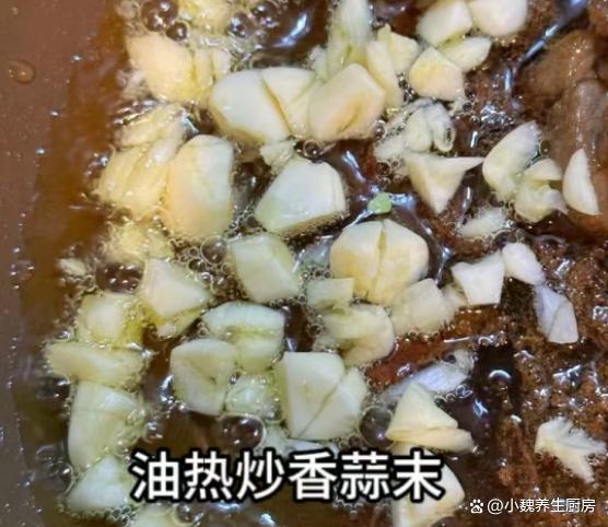 5:锅中提前预热,加上食用油烧热,放入蒜末和姜末,迅速爆炒香味,倒入牛肉丝爆炒至变色,将其盛出即可。
