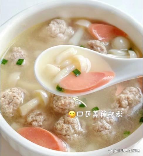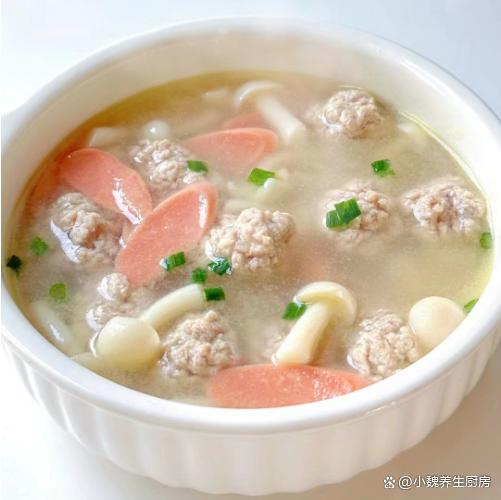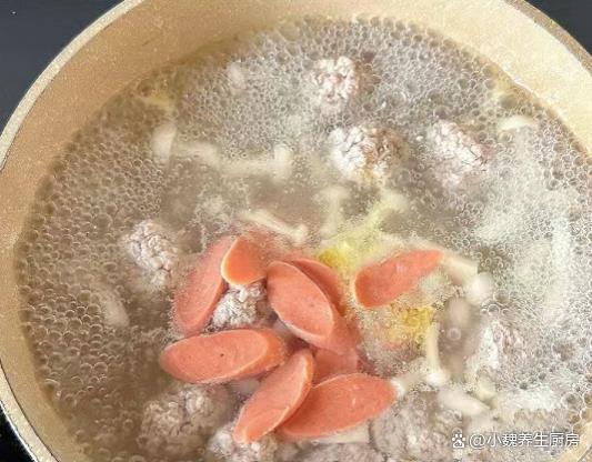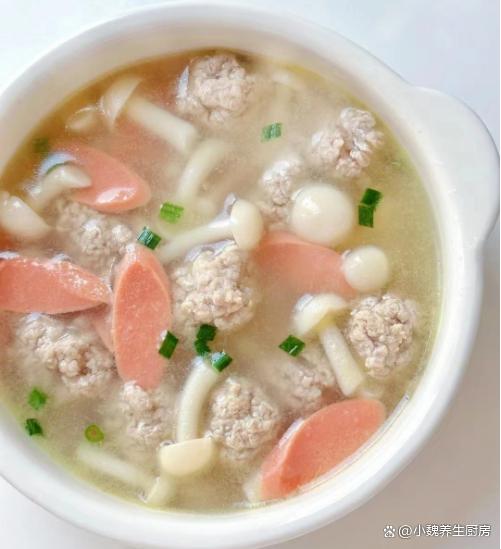 秋季过去,迎来冬天,今日就盼来立冬节气,象征着冬天的来临,冬天给人寒风刺骨的感觉,一阵阵狂风之后,脸部被冻得红彤彤的,身体会十分虚弱,想要安稳度过今年,一定要抓住进补的最佳时期,常给家里人煲汤喝。许多北方人很少喝汤,但是南方人喝汤,比较注重养生,一日三餐都是汤汤水水,给身体提供多种营养,对身体有许多益处。今天推荐我们南方人常喝的一款家常汤品——海鲜菇火腿肠肉丸汤,成本不足15块,汤汁鲜美,老少皆宜。立冬后,有钱没钱,常给家人喝这汤,补足营养,顺利度过寒冬。