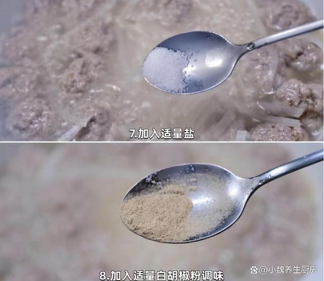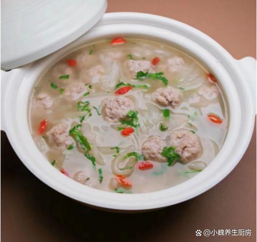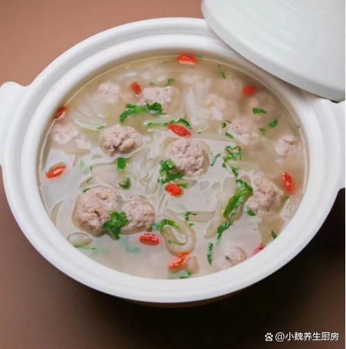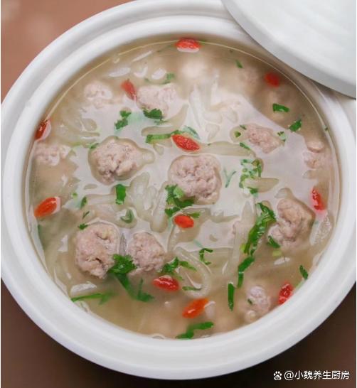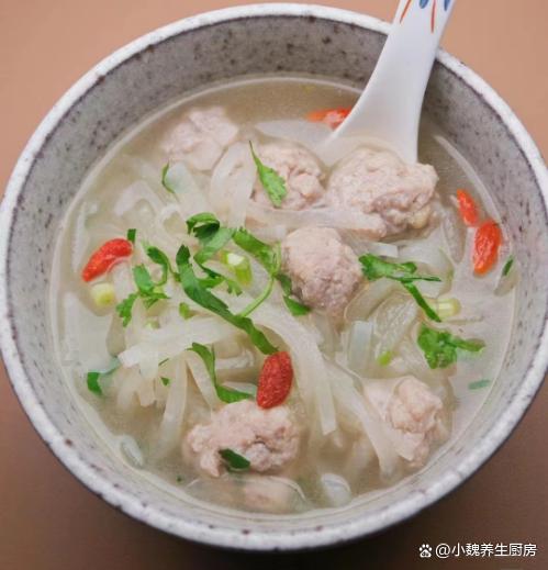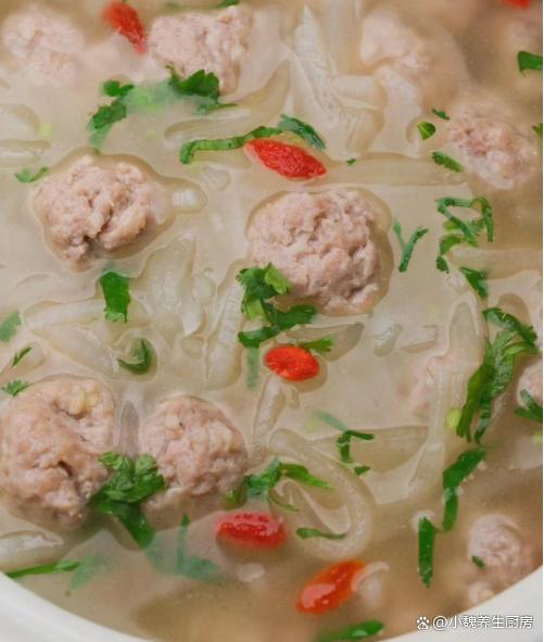 6:出锅之前加上食盐,半勺胡椒粉调味,撒上葱花,丢入一些枸杞子即可,焖煮一小会儿,这道白萝卜莲藕肉丸汤就烹饪完成了。 (www.ws46.cOm) 白萝卜莲藕肉丸汤是一款汤汁巨鲜美的汤品,肉丸子用莲藕和猪肉制作而成,搭配白萝卜丝增添汤品的鲜味,肉丸子特别有弹性,汤汁喝起来鲜美极了,口感十分Q弹,非常适合立冬节气食用。 小伙伴们,你们是否喝过这款白萝卜莲藕肉丸汤呢?(文中配图全部出自网络)