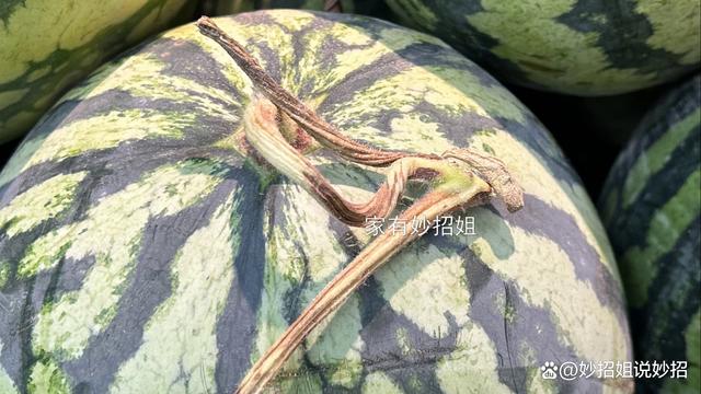 二:瓜藤。 在买西瓜时,相信很多朋友都发现了,有些摊贩的西瓜上都会留有一截长长的瓜藤,但有些摊贩的西瓜,就只是留有一点点的瓜藤,甚至直接将瓜藤都给摘掉了。很多朋友觉得瓜藤压秤,会选择瓜藤短、甚至没有瓜藤的西瓜。但其实,我们通过这个瓜藤,便能判断出西瓜的新鲜度与甜度。要是瓜藤新鲜翠绿的,就说明这个是刚刚采摘不久的西瓜;而瓜藤发黄的,就表示西瓜放置的时间久了。那些没有瓜藤的西瓜,很可能就是瓜藤已经枯萎,摊贩自己摘掉的,让我们无法判断它是否新鲜。因此,在买西瓜时,我们就最好挑选那种带有新鲜瓜藤的,一点点瓜藤也不重。