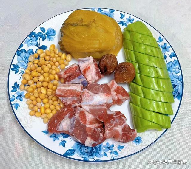送走十月份,迎来十一月的到来,正值秋意最浓的时候,因为秋季前期和中期都特别暖和,感受不到一丝丝秋意,虽然在深秋阶段感受到秋天的感觉,但是不能持续很长时间,马上要迎来冬天。秋冬马上要开始交替,气温要开始降温了,天气会变得寒冷了,我们要多吃肉进补,平常别忘记多喝汤品,滋补润燥,暖胃健脾,对身体有益处。今天推荐一款南方人晚餐必喝的家常汤品——黄豆苦瓜酸菜排骨汤,主要采用黄豆,苦瓜,排骨和酸菜制作而成,每周炖一锅,汤汁非常浓郁,喝起来有独特的感觉,赶快学起来哦。天冷了,无论多忙,多给家人喝这汤,补足营养,增强免疫迎接冬天。  【黄豆苦瓜酸菜排骨汤的具体做法】 食材明细:挑选60克干黄豆(黄豆是秋季收获的食材,新鲜黄豆可以做成各种菜肴,干黄豆泡发后可以食用,一般用来油炸或煲汤,黄豆的植物蛋白很高,是我们日常生活所需的营养),选购酸菜150克(酸菜是北方人用芥菜和白菜制作而成的腌菜,口感嘎嘣脆,吃起来微微有一点酸,可以有多种食用方法),若干个蜜枣,冷水足量,纯净水少许,挑选新鲜苦瓜一条,温水少许,新鲜排骨400克左右,少许料酒,食盐若干,胡椒粉少许,其他调味品。 正确做法: 1:提前准备好苦瓜,黄豆,酸菜和排骨,先把酸菜洗干净,切成若干小块,几个蜜枣去核洗干净,生姜切成若干片状。2:苦瓜的外皮洗净,用刀从中间切开,刮掉里面的黄色部分,反复冲洗干净,切掉两头部位,切成一些小块。 摘自: www.ws46.com 3:将黄豆都放在碗中,用冷水泡发40分钟,起锅煮一些热水,倒入苦瓜焯水,捞出备用,这样能够去掉苦涩的味道。 4:提前把排骨全部剁成块,排骨要清洗3遍,也可以用面粉揉搓,锅中放入排骨,姜片和葱段,加上冷水少许,加上若干料酒,把排骨焯烫处理,去掉血腥味,用温水冲洗表面浮沫。