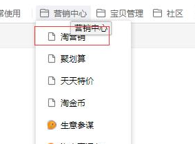 第一步:大家需要登录店铺后台的淘宝卖家中心,找到营销活动中心,点击营销活动之后会有一个下拉框,这时候大家需要选择淘营销选项,如下图所示: