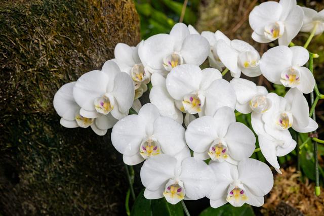 其次,蝴蝶兰对光照也有一定的要求。它是一种能耐受半阴的植物,既需要一定的光照来进行光合作用,又不能长时间暴露在强烈的阳光下,以免被灼伤。在室内养护时,可以通过调整窗帘、百叶窗等来控制光照强度和时间,以满足蝴蝶兰的生长需求。而在室外,尤其是在夏季,阳光强烈,如果没有适当的遮荫措施,蝴蝶兰很容易受到伤害。 此外,蝴蝶兰还需要一个湿度适宜的生长环境。它喜欢高湿度的环境,空气湿度变化不能过大。在室内,可以通过喷雾、加湿器等方式来维持较高的空气湿度。而在室外,湿度受天气、季节等多种因素影响,难以保持稳定。