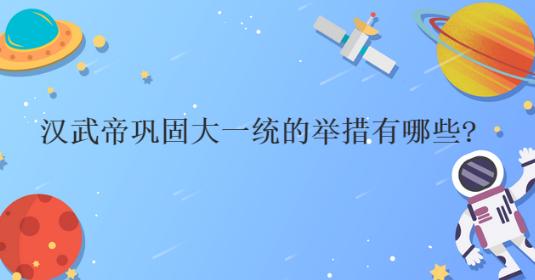 汉武帝巩固大一统王朝的措施:政治、经济、军事、意识形态和文化、官僚团队监督和选举。 政治上,颁布“推恩令”及“酎金夺爵”政令,下诏规定诸侯王除以嫡长子继承王位外,可将封地再次分封给其子弟作为侯国,由皇帝制定封号,这样,侯国越来越多,诸侯王的封地和势力越来越小,汉武帝随后又找各种借口削爵、夺地甚至除国,严厉镇压他们的叛乱,诸侯王从此一蹶不振。 经济上,铸币权、盐铁管理权归还中央政府,发行五泰铢,重视水利建设,治理黄河,推广先进农业技术,农业生产得到空前发展,西汉初年,私人铸币并没有完全被禁止,盐铁的管理大多掌握在暴君手中,于是,社会上出现了许多富商大亨,控制着国家的经济命脉,例如,汉初诸侯王造反时,政府向诸侯王借钱以平定叛乱,但诸侯害怕政府赢不了,所以拒绝借钱。
