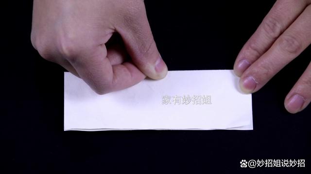 技巧三:纸张穿针法。 我们先拿一张纸,把纸从中间对折一下,然后在中间对折的位置用手指按压一下,使折痕更加明显。