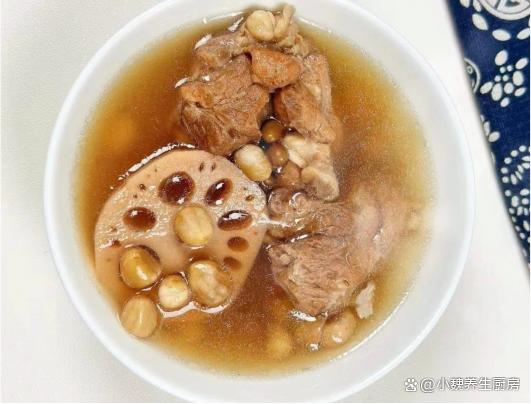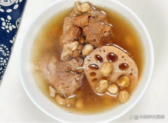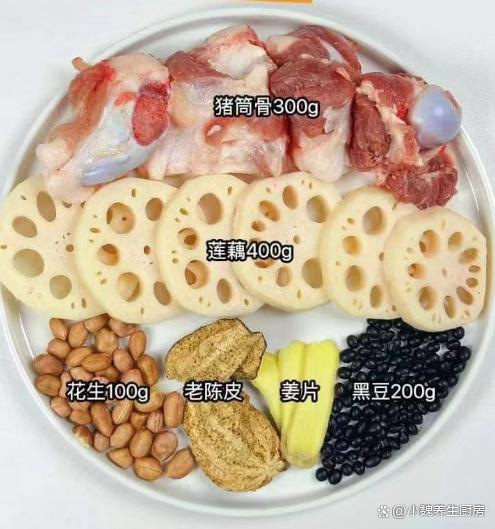 过完十月份,就来到十一月份,每年的十一月都是旺季,是很多人忙碌的时候,但是不能忽视自己的身体,由于处于深秋季节,天气开始渐渐变冷,气温慢慢降低,我们身体处于免疫力低下的时候,我们需要多吃鱼肉猪肉,平常要经常喝汤,汤品的营养更容易吸收,喝起来暖和和,能够起到御寒的作用。每年到了秋冬交替的时候,气色会特别差,尤其是女性容易贫血,脸色暗淡无光,身体特别虚弱。秋冬季节,不管家里贫富,可以给家里人尝尝这款鲜汤——黑豆花生莲藕骨头汤,每周喝几次,汤汁十分鲜美,让你身体更加强壮。“11月一碗汤,身体更安康”,秋冬多喝这汤,补足营养,迎接冬天。  【黑豆花生莲藕骨头汤的食谱解析】 食材明细:选购优质花生米100克(花生是营养极高的豆类食材,其中铁元素很高,能够促进血红蛋白的生成,达到补血养颜,健脾和胃的目的,花生不仅仅可以油炸,还可以用来煲汤喝 ),老姜一大块,黑豆200克左右,选购几节洪湖粉藕(莲藕有很多品种,秋季是吃莲藕的时候,莲藕吃起来粉粉的,藕汤非常鲜美甘甜,秋冬吃非常养人),陈皮8克,猪筒骨300克左右,冷水和温水若干,几个蜜枣,少许料酒,食盐和胡椒粉少许,其他佐料。 详细制作步骤: 摘自: www.ws46.com 第一步:提前选购好黑豆,花生米,莲藕和筒子骨等食材,筒子骨让商贩剁成块,自己家的刀不快,筒子骨用冷水冲洗和浸泡,泡出里面的血水。 第二步:黑豆放在容器中,用冷水淘洗干净,然后提前浸泡几个小时,花生米也洗净和泡发,最后控干表面的水分。第三步:陈皮用温水泡软,刮掉表面的脏东西,老姜切成一些片状,莲藕反复清洗干净,用工具去掉外皮,洗净切成若干块状或片状。 第四步:另外准备一个汤锅,放入猪筒骨,加上若干清水没过食材,将其焯烫去腥处理,逼出血腥味,温水冲洗干净,准备好一些煲汤的食材,开始烹饪这道黑豆花生莲藕骨头汤吧。 第五步:炖锅里放入处理好的骨头,放入花生米,黑豆,陈皮,蜜枣,姜片和纯净水足量,盖上锅盖大火煮沸,中途撇去一层油腻的浮沫。 第六步:然后放入一些莲藕,转至小火煲1.5个小时,汤汁慢慢变为红色,加上一丢丢食盐,加上白胡椒粉少许,等待莲藕煮到粉烂。第七步:关火出锅,这款黑豆花生莲藕骨头汤就可以食用了,趁着最近降温,给家里人做一做。 黑豆花生莲藕骨头汤是一款进补的鲜汤,食材都特别便宜,主要选用黑豆,花生米,莲藕和猪骨炖煮而成,放入陈皮和蜜枣,让汤汁的食疗价值倍增,补气活血,暖胃健脾,有助于调理身体,气色越来越好。 小伙伴们,你们是否喝过这款黑豆花生莲藕骨头汤呢?(文中配图都来自网络)