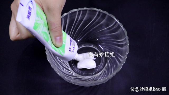 自己调制胶水所需要的物品也很简单,只要使用上一点牙膏、洗洁精、面粉、温水就可以了。我们先准备一个碗,在碗里挤入一段牙膏,这个牙膏最好是选用白色的,白色牙膏的粘性更好,而且用它来粘物品,还不会那么明显。