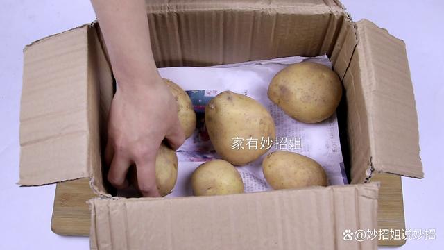 方法一:干燥保存法。 土豆变绿发芽,就离不开一定的湿度,那么我们想要延长土豆的保存时间,就可以把它存放在干燥的环境里,这样土豆就不会发芽了。方法很简单,我们先准备一个纸箱,然后再拿上一些报纸。在纸箱的底部垫上一层报纸,接着再均匀的撒入一些小苏打。纸箱、报纸、小苏打都是干燥的,还可以吸收周围的湿气,这样就能保持内部一个干燥的环境,而且纸箱还具有避光性,可以抑制土豆的发芽速度。接下来,我们再将需要保存的土豆放置在纸箱中,在这个干燥又避光的环境里,土豆也就不容易出现发芽的情况了。