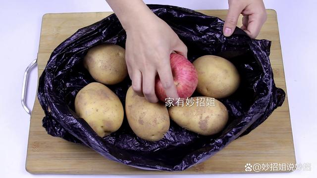 方法二:苹果保鲜法。 苹果就是日常生活中经常会吃到的一种水果,可能很多朋友都不知道,其实苹果也可以用来保存土豆。我们只需要准备一个厚实点的塑料袋,然后将土豆放在袋子中,接着在里面放入一个苹果,再将袋口扎紧后放在家里阴凉干燥的地方,就可以使土豆保存很长的时间都不容易发芽变质。苹果保存土豆的原理,其实是因为苹果会释放出一种叫乙烯的气体,这种气体是一种天然的催熟剂,它具有保鲜的功效,也就能使土豆保鲜、不容易变质了。不过,苹果放置一段时间后会出现腐烂的情况,所以,我们每隔几天就要记得更换一个苹果,以免烂掉浪费了。