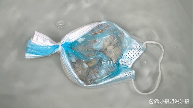 妙用二:去除衣服上的污渍。 平常吃饭,难免会有一些汤汁、油渍之类的弄到衣服上,尤其是家里的孩子,衣服上还总是沾了各种油渍,这些油渍往往还很难清洁干净。遇到这个问题,我们同样可以利用上鸡蛋壳,只需要拿个口罩,将口罩的一端剪开,然后在口罩里面放入两、三个捏碎的鸡蛋壳,接着将口罩扎紧,再放入温水中泡一泡。