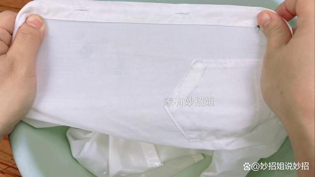 大概浸泡上10几分钟后,我们再把装有鸡蛋壳的口罩包拿出来。然后将沾有油渍的衣服放入这个水中,让它浸泡上五六分钟。