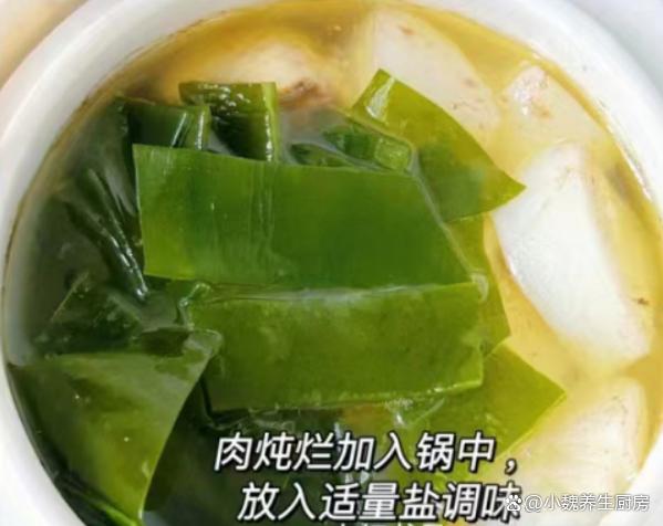 第五步:锅中调入少许油,倒入鸭肉快速煸炒,将鸭肉放入炖锅里,加上一些姜片,炖1个小时。 第六步:放入一些海带和白萝卜块,让鸭肉炖煮至软烂,加上一丢丢食盐调味,加上胡椒粉和其他佐料。第七步:继续焖煮一会儿,滴入香油,放入葱花点缀,这道海带白萝卜老鸭汤就烹饪完成了。 海带白萝卜老鸭汤是秋季最爱的鲜汤,鸭肉不仅仅可以红烧,还可以拿来煲汤,鸭肉软烂入味,汤汁鲜美倍增,搭配白萝卜和海带炖汤,白萝卜的清甜口感,海带的营养价值都融入到汤里,满足我们秋冬季节营养的需要,舒服度过冬天。 小伙伴们,你们是否喝过这款海带白萝卜老鸭汤呢?(文中配图都出自网络)