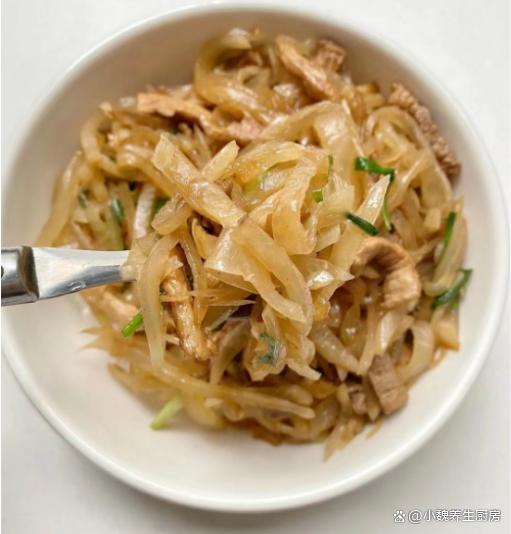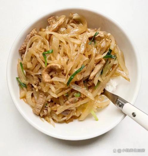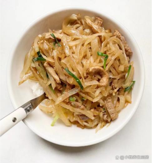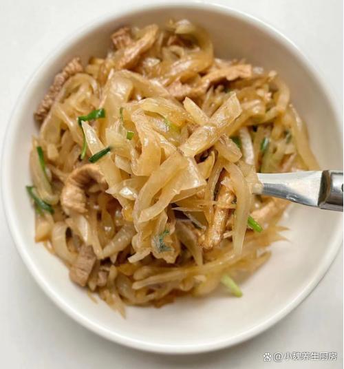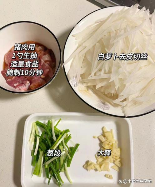 | 十月尾声,马上要进入十一月份,处于一年中最忙碌的日子,最近天气非常阴冷,气温逐渐降低,外面的树叶都枯黄了,野草也枯萎了,感觉秋季就要结束了。秋季从热转到寒冷,正是我们身体最虚弱的时候,为了避免生病,一定要注意好自己的饮食,多吃应季的蔬菜,比如说萝卜和白菜。长辈们都说“冬吃萝卜,夏吃姜”,萝卜是秋冬最受欢迎的蔬菜,价格特别便宜,搭配肉类是绝配。今天准备用白萝卜和猪肉制作一道家常小菜——白萝卜丝炒肉丝,小白都能够学会,口感清爽解腻,秋季吃它正当季。许多人没有吃过这道白萝卜丝炒肉丝,到底要如何来烹饪呢?赶快收藏此菜的食谱吧。秋冬季节,有钱没钱,建议要多吃“一宝”,营养又解馋,别不懂吃。