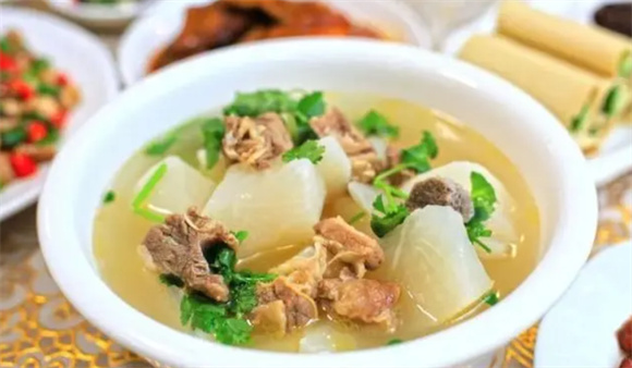 3. 羊肉萝卜煲: 这款汤的主要食材是羊腿肉和半个大萝卜。将羊腿肉浸泡并清洗,加入生姜和煮沸,撇去浮沫。加入切块的萝卜,煮沸后调味,加入红枣和红枸杞。这款汤充满了营养,适合在寒冷的季节食用。 4. 药膳老鸭汤: 这款汤使用了老母鸭、当归、枸杞、党参、茯苓、熟地、川穹、白术、香叶、破故纸、杜仲、桂枝和老姜等食材。将鸭肉和药材一起炖煮,最后加入调味料。这道汤充满中药药性,有助于温暖身体,提高免疫力。