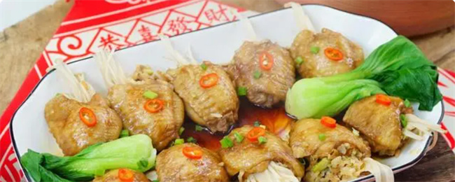 三、萝卜酿肉 1. 准备白萝卜、猪肉馅、大葱、白胡椒粉、姜、盐、蚝油、玉米淀粉、清水。 2. 将白萝卜切成圆片。 3. 准备肉馅,加入各种调味品,如蚝油和姜。 4. 将白萝卜片填充肉馅,蒸制至熟透。 四、八宝鸡翅 1. 准备鸡翅、金针菇、大虾、青菜、干香菇、虫草花、红枣、青豌豆、干贝、干虾仁、糯米、各种调味品。 2. 将各种食材打碎,制成八宝馅料。 3. 将鸡翅去骨,填充八宝馅料,蒸制至熟透。 五、胡萝卜蒸肉 1. 准备胡萝卜、肉馅、鸡蛋、姜、葱花、盐、鸡精、胡椒粉、生抽、白灼汁或蒸鱼豉油、淀粉、清水。 2. 制备肉馅,加入各种调味品。 3. 捞出胡萝卜片,将肉馅填充其中,蒸制至熟透。