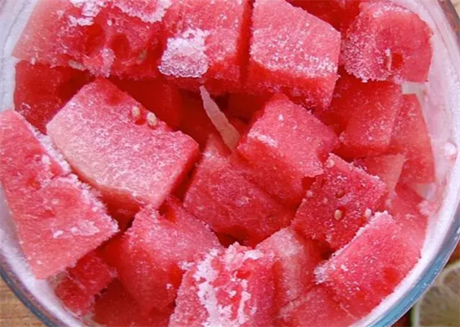 制作步骤: 一、准备冷冻西瓜块 将西瓜切成小块,将这些西瓜块放入冰箱中,直到它们完全冷冻成冰块。这将需要一些时间,但它是制作西瓜沙冰的关键步骤。 二、搅拌西瓜沙冰 1. 取出冷冻的西瓜块,将它们放入搅拌机中。 2. 如果你觉得西瓜不够甜,可以添加适量的蜂蜜,根据个人口味来决定。 3. 可以加入一些自己喜欢的酒精饮料,但请注意不要加得太多,少量即可。 4. 启动搅拌机,将所有食材搅拌均匀,直到它们变成了细腻的沙冰状。 三、品尝美味清凉 1. 做好的西瓜沙冰香气扑鼻,口感清新,甜度适中,非常适合解暑。 2. 这美味的西瓜沙冰成为了夏日里的解暑佳品,清凉的口感和水果的甜美相得益彰,让你在炎炎夏日中倍感清爽。