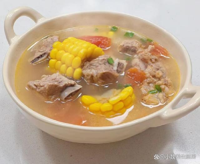 岁月如梭,时间过得很快,秋季马上要结束了,很多人非常享受这一段时间,很多人称为深秋,处于秋季的最后阶段,气温持续降低,秋风阵阵,身体感觉困乏无力,精气神很差。每年到了深秋,一定要抓住这个时期,要注意调理身体,多喝暖和和的羹汤,比如说这款番茄玉米排骨汤,喝起来非常鲜甜,暖胃暖身,为身体提供大量的营养,让你今年冬天过得安稳。“深秋一碗汤,冬天不用慌”,多给家人喝这汤,补足营养迎接冬天。  【番茄玉米排骨汤的具体做法】 食材明细:选购新鲜番茄1-2个(番茄属于果蔬,既可以生吃,还可以用来做菜,番茄的番茄汁很多),选购玉米一个,大葱半根,生姜15克左右,选购400克排骨(也可以选择猪骨或筒子骨,煲汤非常鲜美,滋补身体),食用油少许,适量料酒,温水少许,番茄一勺,温热水少许,食盐若干,鸡精半勺,胡椒粉少许,其他调味品。 详细制作顺序: 第一步:提前准备好玉米,番茄和龙骨,先把玉米剥掉叶子,撕掉玉米须,玉米剁成若干块状,玉米块用盐水浸泡,捞出备用。第二步:将番茄的蒂去掉,外皮清洗干净(或者用热水烫一下外皮,可以去掉外皮),切成若干小块,备用。 第三步:大葱去掉多余部位,洗净斜切成小段,排骨提前剁成块状,排骨用冷水泡出血水,重复2到3次,然后用冷水下锅焯水(加上姜片和料酒),捞出备用。