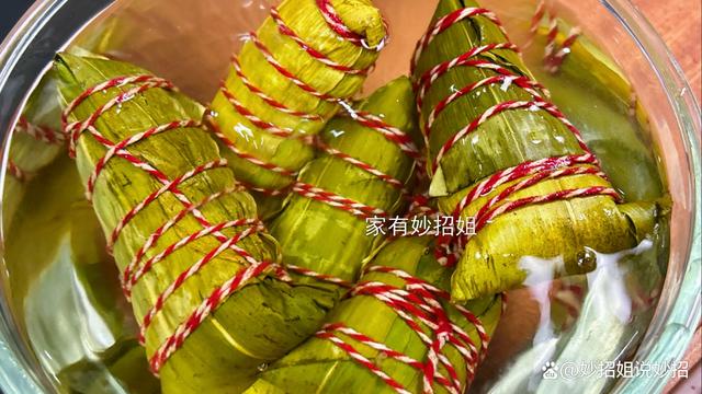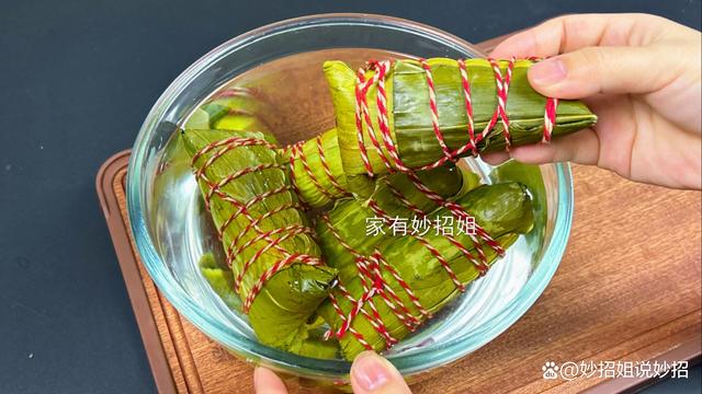 大概浸泡上1~2分钟的样子,我们再将粽子捞出来,浸泡的时间不要太长了,不然粽子里面就会吸收太多的水分,如果是甜粽的话,还会使口感变咸。只是泡1、2分钟,粽叶就能够充分吸水,这样在后续的冷冻过程中,就能保持粽子的口感和新鲜度,同时又不会影响到粽子原有的美味。
