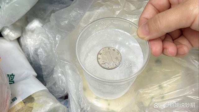 这个时候,冷冻室里的冰块和硬币就能发挥作用了。我们可以观察这个硬币的位置变化,判断冰箱到底有没有停过电。如果我们发现原本放在表面的硬币已经下沉,沉到了杯底,那么就表明,你不在家的这段时间里,家里停过电,还停了很长的时间。冷冻室里的食物,也和冰块一样,化冻后又重新给冻上了,这些食物就建议不要再继续食用了。