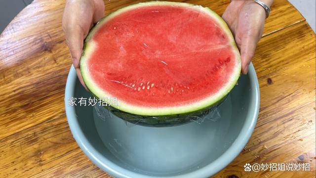 接下来,我们再将西瓜连盆放在家里阴凉的地方,就可以保存2天西瓜都不会坏。要是温度比较高的话,就建议每天更换1到2次的凉水,这样西瓜保存的时间就会更久。这个保存西瓜的方法,就算不放冰箱,也可以保存它依旧新鲜。虽然说没有放冰箱那么凉,但也会比正常放着要凉一点。吃起来冰冰凉凉的,还不会对肠胃造成负担。