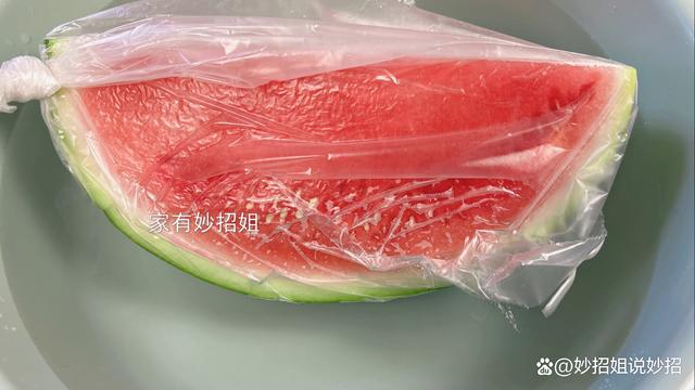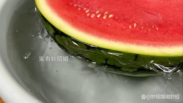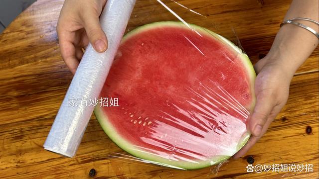 平时我们切西瓜,一般都是将西瓜一切为二的,当留下半个西瓜没有吃完,需要保存的话,我们就先用保鲜膜将西瓜的切口都包裹起来。这样不仅可以有效阻挡空气中的灰尘掉落在上面,而且也能防止那些蚊虫、苍蝇在西瓜表面栖息。这样一来,就能大大减少细菌、污垢等在西瓜表面停留,确保我们在下次品尝时,西瓜依然保持着清爽与美味。