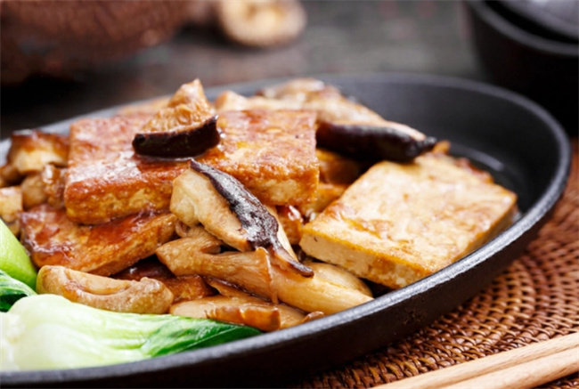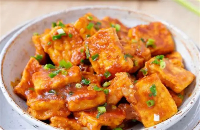 四、脆皮豆腐 材料: 老豆腐(400克) 鸡蛋(1个) 淀粉/植物油 小葱(1棵) 酱油(3勺) 做法: 1. 用清水冲洗豆腐,切成1厘米厚的小块。 2. 在锅中加入冷水,将豆腐块加入,加热至水开始冒小泡后关火(不要过度煮,否则会变硬)。 3. 煮熟的豆腐捞出,沥干水,在鸡蛋中沾湿,再在淀粉中沾湿。 4. 在平底锅中倒入适量的植物油,将豆腐均匀摆放在锅中,煎至两面金黄。 5. 在锅中倒入酱油,加入一碗水,用中火煮沸,煮至汤汁略浓稠后,撒上一些葱花即可。 五、家常五彩豆腐 材料: 韧豆腐 甜玉米 甜豌豆 干香菇 胡萝卜 油 盐 生抽 淀粉 香油 做法: 1. 泡发干香菇,去皮切丁,切胡萝卜、甜玉米、甜豌豆,将韧豆腐切成小块。 2. 在炒锅中热油,先加入胡萝卜和香菇翻炒,加入甜玉米和甜豌豆翻炒均匀。 3. 加入开水,放入豆腐块,加入适量的生抽、盐调味,盖上锅盖,焖煮10分钟。 4. 最后用水淀粉勾芡,淋上香油即可。