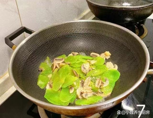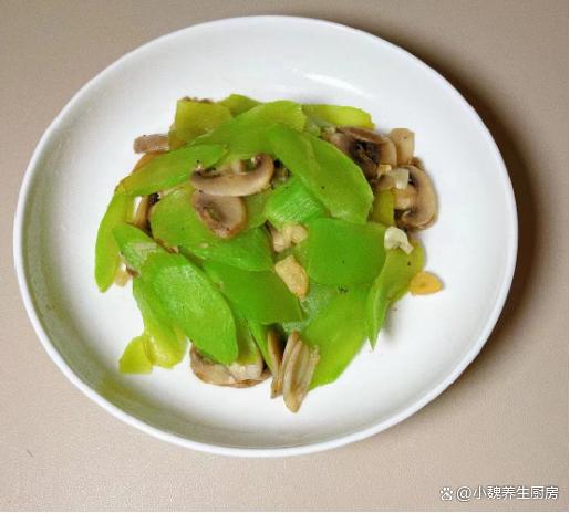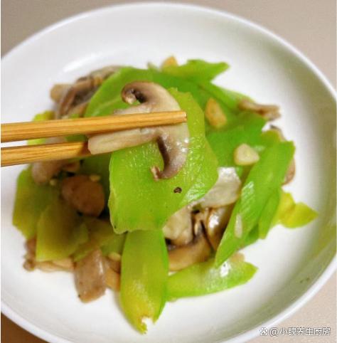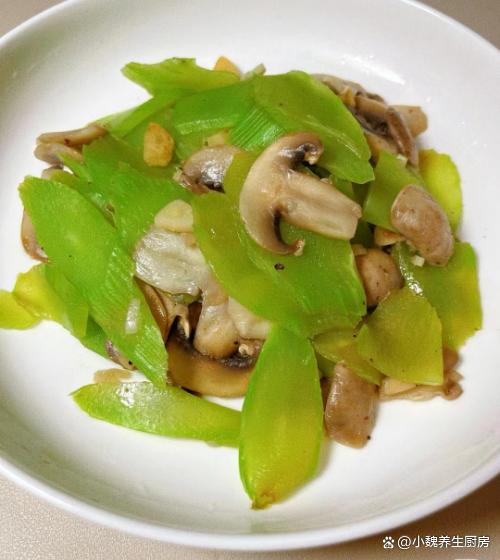 现如今,我们生活越来越富裕,科技也越来越发达,人人都过上富裕的日子,外卖行业蓬勃发展,越来越多的年轻人,不喜欢在家做饭,外卖成为其首选。外卖虽然能够节省时间,但是吃起来并不健康,最近很多外卖都用预制菜,其实吃多了对身体没有好处。一年有四季,每年春秋两季是最困扰的日子,因为天气非常凉爽和温和,不冷也不热,白天很容易睡着,晚上容易犯困,失眠是很多年轻人困扰的问题。市面上有许多蔬菜,比如说菠菜,莴笋,都可以有效预防失眠的情况,莴笋叶子和根茎都是宝,今天为网友们分享一道家常的吃法——莴笋炒口蘑,比大鱼大肉还好吃,吃起来特别解馋。秋季之后,碰见这菜别错过,解馋开胃,营养极高,别不懂吃!  【莴笋炒口蘑的食谱解析】 准备一些食材:选购300克莴笋(莴笋是一种常见的根茎类蔬菜,秋季季节的莴笋最好吃,价格不贵,老少皆宜,可以荤素搭配,怎么吃不会长肉 ),选购新鲜口蘑300克(口蘑又叫白蘑菇,是一种色泽洁白的食用菌,菌菇光滑细腻,清香宜人,煲汤或素炒都很不错),若干个大蒜头,老姜一小块,猪油渣或猪油少许,少许食盐,生抽和蚝油少许,一小勺鸡精,冷水少许,其他调味品。 正确制作顺序: 第一步:提前准备好新鲜口蘑,莴笋和其他配菜,先把口蘑的根部用用剪刀去掉,用流水冲洗几遍。第二步:口蘑放在大一些的器皿里,加上适量清水和食盐,菌盖反复搓洗干净,另外煮一些清水,煮沸后倒入口蘑焯烫1-2分钟,过凉水浸泡,切成厚度相同的片状,记得要控干表面的水分。第三步:将一些大蒜拍扁,切碎成蒜末,生姜切成细末,莴笋去掉 叶子,顺着外皮去掉白茎,反复清洗干净,然后切成厚度相同的片,莴笋片用盐水浸泡,这样口感会更好一些。