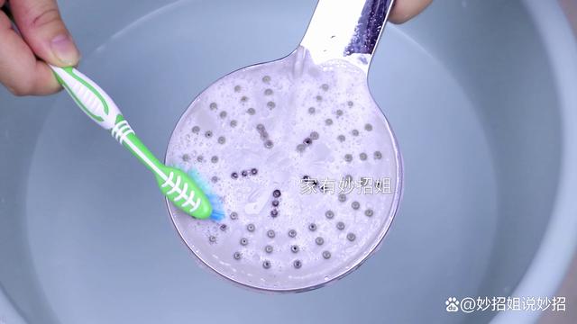 浸泡的时间差不多了,我们将喷头从塑料袋中拿出来。然后再找把旧牙刷,并在牙刷上挤点牙膏,接着直接用牙膏牙刷来刷洗喷头。经过浸泡,喷头表面的污渍都被软化,很容易就能清洁掉,而且牙膏具有很强的清洁作用,这样用牙刷简单的刷一刷,就可以把水垢都刷洗干净了。