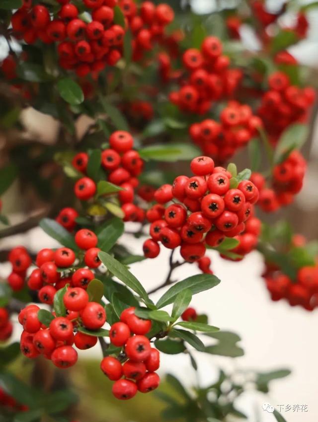 火棘,当你听到这个名字,便会感觉充满了力量和活力。它的果实如同火焰般热烈,鲜红漂亮,色彩鲜艳,是秋冬季节里的一抹亮色,它的枝条坚韧,叶片浓绿,通过一些手段便可以打造出独特的造型,深受盆景爱好者的喜爱。火棘不仅仅是一种观赏植物,它的果实还能食用,酸酸甜甜,富含多种维生素,是健康与美丽的象征,因此,也叫救军粮。 人们把火棘视为是一种吉祥物,代表的是吉祥和富贵,养在家宅中,可以镇宅安家,增添喜庆的氛围和寿运,并且招财进宝。