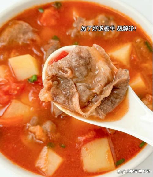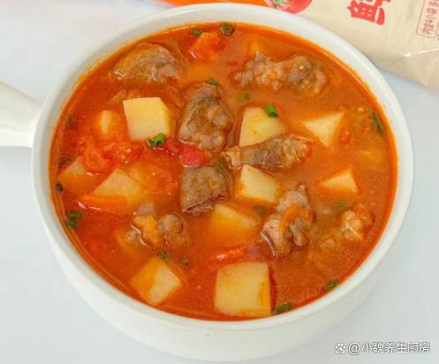 转眼之间,时间已经快要到秋季的尾声了,很多人还在美丽的秋天回忆之中,即将迎来霜降节气,10月24日这天就是霜降节气,是今年秋天最后的节气,再过一段时间就要入冬了,意味着冬天要来临了。随着冷空气的南下,狂风来袭,气温不断地下降,我们要提醒家里人,注意别感冒了,平常要多穿一些衣服,避免生病着凉。到了秋季尾声,很多人除了喜欢吃火锅,许多人爱喝暖暖的鲜汤,比如说这款番茄土豆肥牛汤,主要选用了肥牛卷,番茄和土豆制作而成,汤汁浓郁,解馋开胃,别不懂吃。霜降将至,有钱没钱,多给家人喝这汤,汤汁鲜美,补足营养身体好。