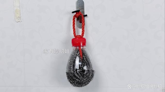 我们的钢丝球使用好后,还可以把上面的绳子直接挂在水龙头上,或者在墙壁粘个挂钩,把它挂在挂钩上,既可以收纳,而且还能起到一个沥水的作用,使钢丝球保持一个干燥的状态。这个利用塑料瓶和钢丝球改造成的刷锅神器,简单又好用。觉得不错的,你也可以制作上一个。如果今天的文章对您有帮助,那就点一个关注,点一个赞,感谢您的支持。
