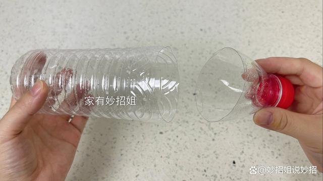 首先我们准备一个塑料瓶,像平时我们喝的矿泉水或饮料瓶都可以。然后我们用剪刀将瓶子上半部分的三分之一处剪下来,这样就将瓶子分成了两部分。我们只需要使用瓶子的上半部分就可以了。