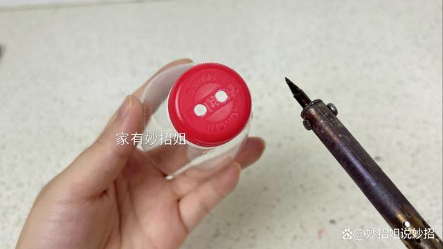接着我们还需要在瓶盖上戳两个洞,要是家里有电烙铁的话,将电烙铁加热后,在瓶盖上打两个洞就可以了。家里没有电烙铁的,我们也可以用剪刀的尖头或者拿根铁钉烧热后,在瓶盖上打两个洞。洞也不需要打得太大,能穿进去绳子就可以。洞戳好后,我们将瓶盖拧下来。