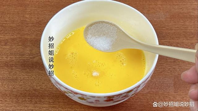 接着,往里面放入一丝丝的食盐,食盐不仅可以增加鸡蛋羹的底味,而且它还能快速凝固蛋白,使鸡蛋能快速定型。