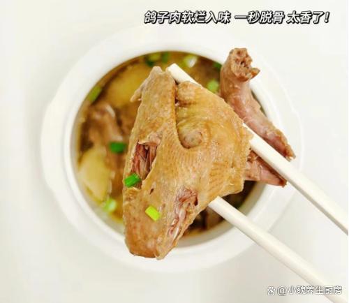 进入十月下旬之后,寒冷的秋天来临了,外面都是凉飕飕的,雨水会非常多,因此有“一场秋雨一场寒”,寒冷的天气悄悄来临,气温下降到10摄氏度左右,感觉要穿上厚一点,平常要注意御寒,不要让身体着凉和生病了。秋冬也是一年温补的好时机,吃牛肉羊肉不如喝汤,今天分享一款老少皆宜的家常汤品——山药莲子炖鸽子汤,喝起来巨鲜美,肉质鲜嫩,滋补养生,好处多多。“秋冬喝汤,一年不慌”,平常多喝这汤,补足营养,改善睡眠质量。  【山药莲子炖鸽子汤的食谱解析】 准备一些食材:选购一根新鲜淮山药(山药是秋冬热门的食材,比萝卜更受欢迎,淀粉和维生素含量高,口感清脆爽口,非常适合用来煲汤),挑选60克优质干莲子(莲子是食疗两用的食材,莲子被誉为“失眠克星”,平常煲汤可以多放一些),选购1-2只鸽子(鸽子一定要选购现杀的,鸽子肉适合煲汤,比鸡汤更加滋补,秋冬季节要常喝鸽子汤,让你身体更强壮),若干个红枣或蜜枣,35克枸杞子,适量冷水和温水,黄酒适量,生姜和香葱若干,食盐和白胡椒粉若干,其他。 具体做法: 1:提前准备好新鲜鸽子,山药,莲子和其他食材,新鲜山药去掉表面泥土,这样方便去皮,去皮洗净,切成若干小段,备用。2:干莲子放入容器中,加上适量温水泡发半个小时,挑出里面的莲子心,捞出备用,生姜洗净切片,香葱打成葱结备用。